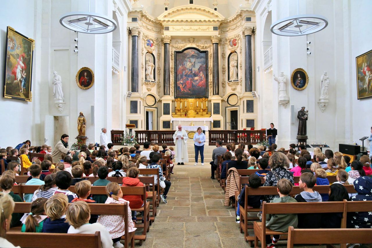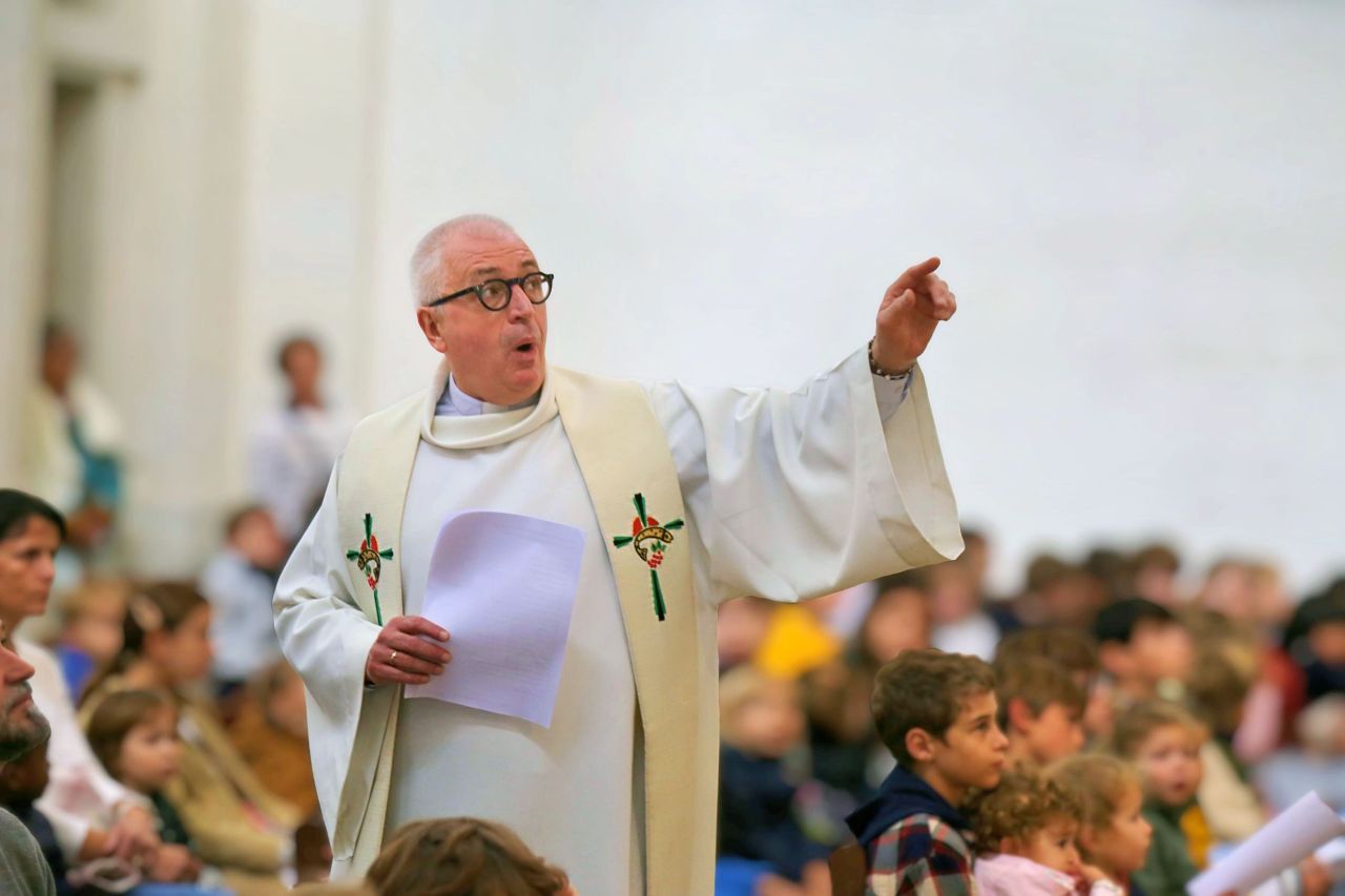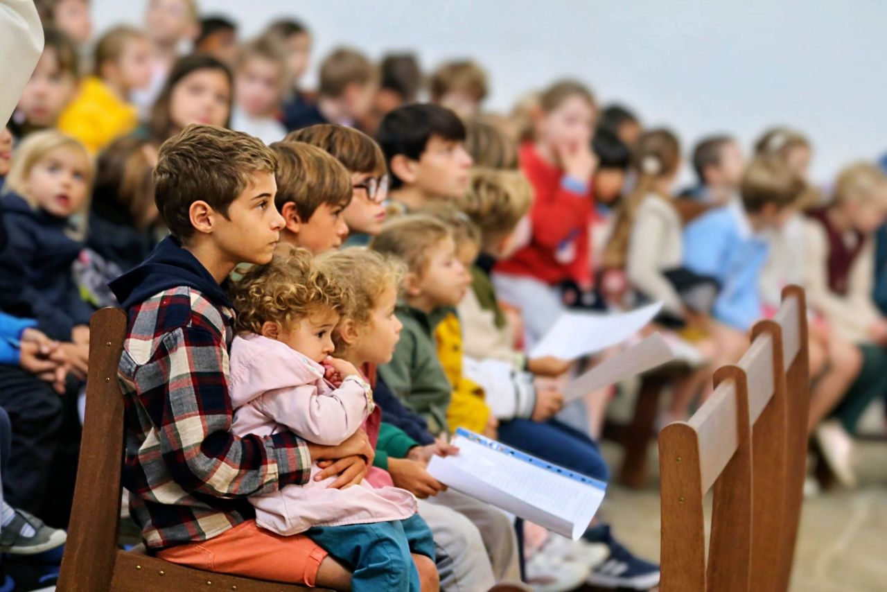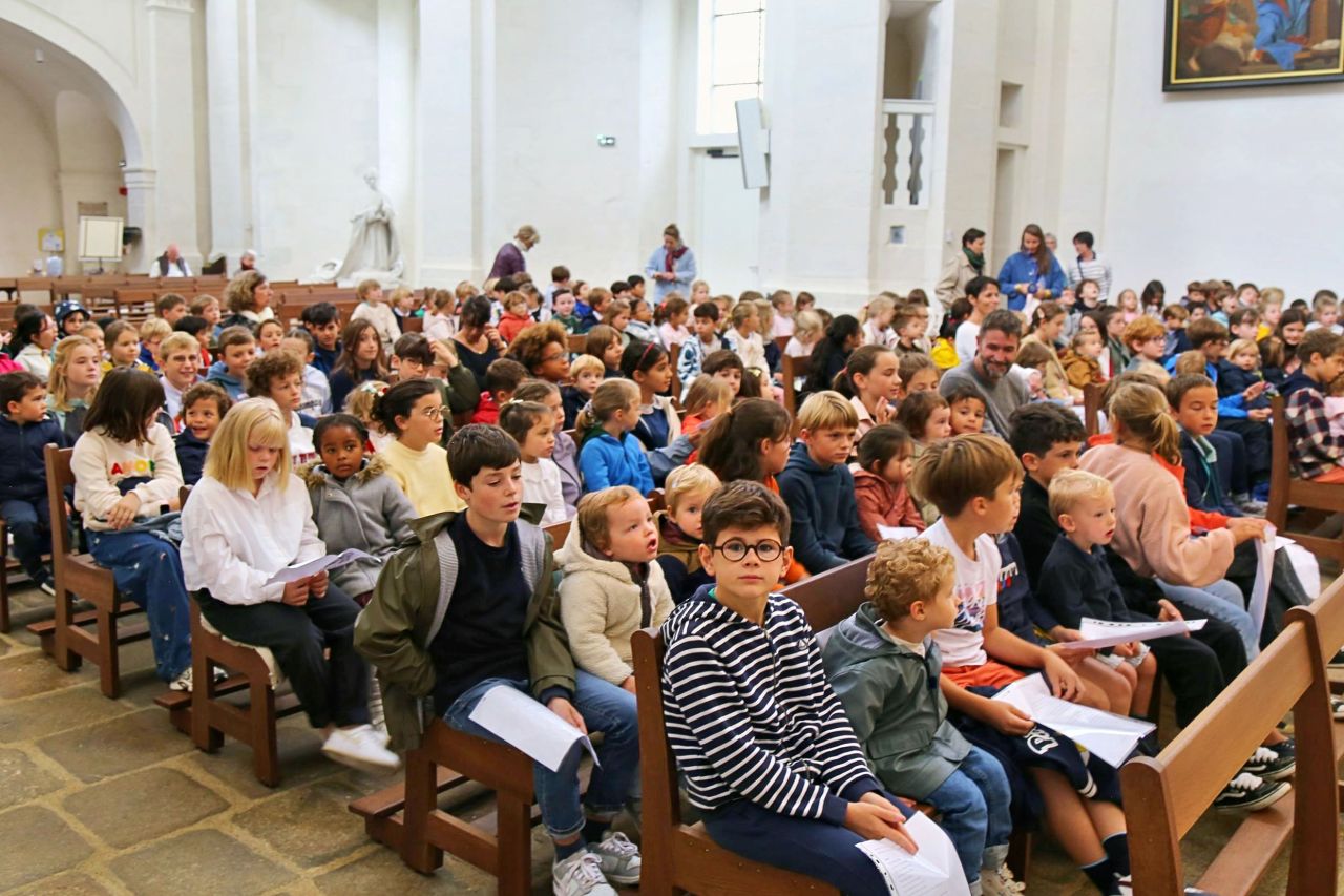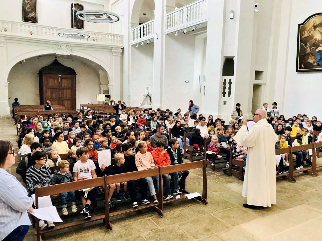 Petits et grands autour du Père Patrice Marivin pour confier notre année scolaire au Seigneur.