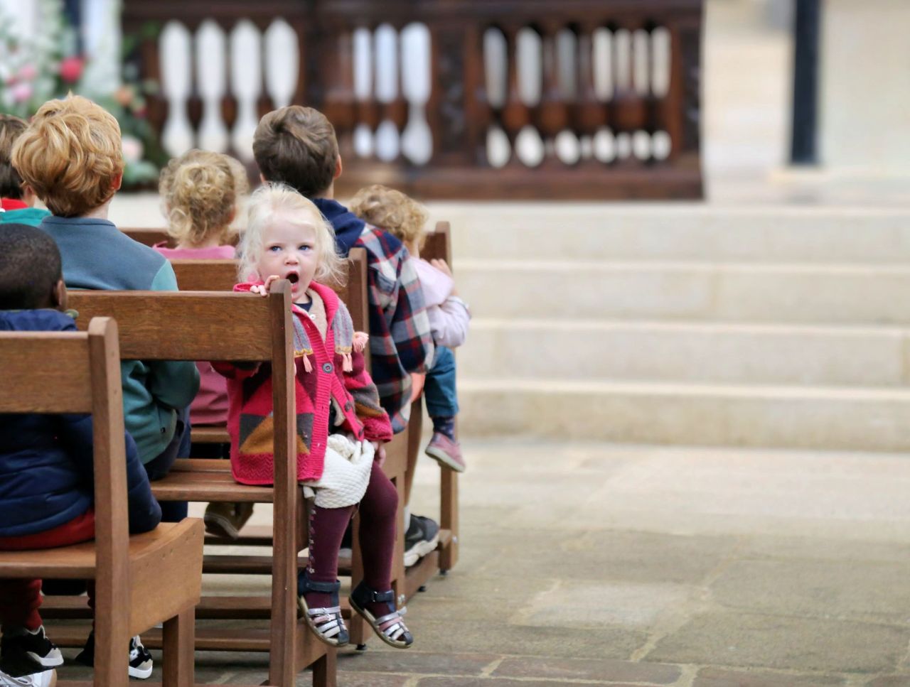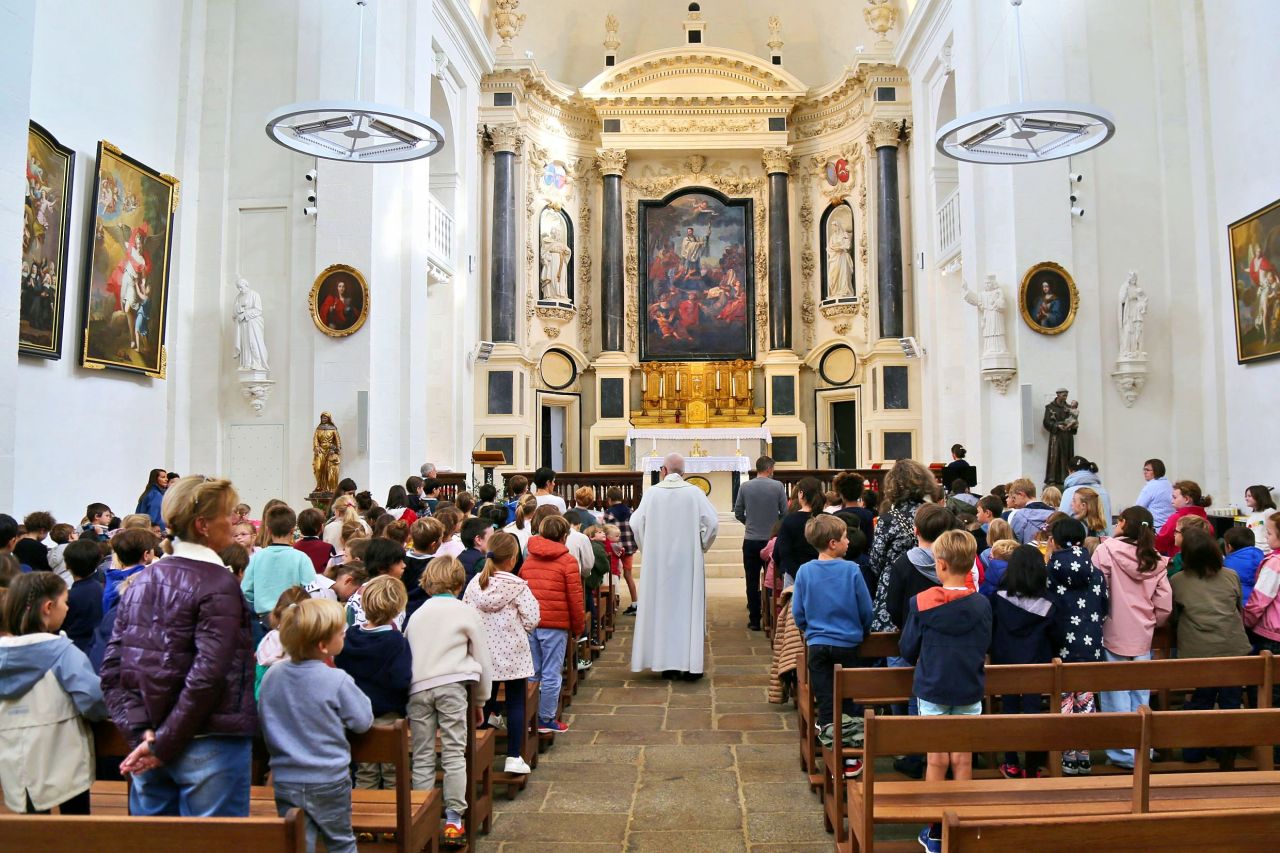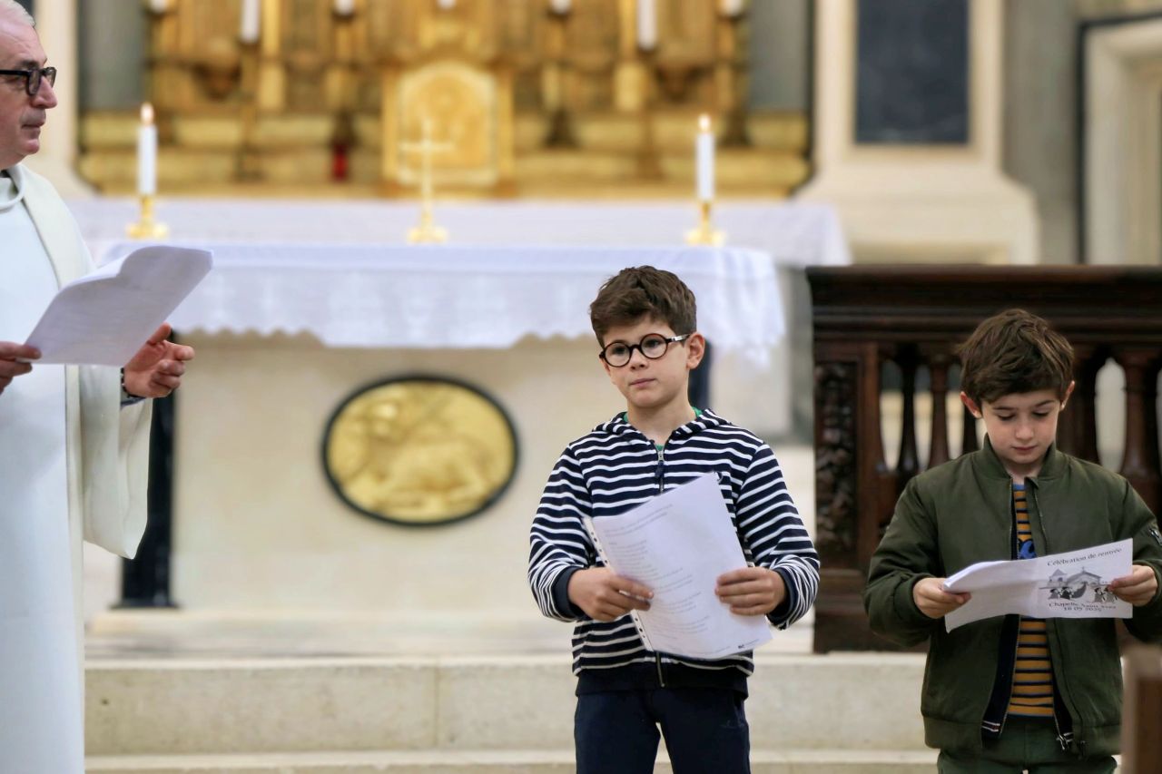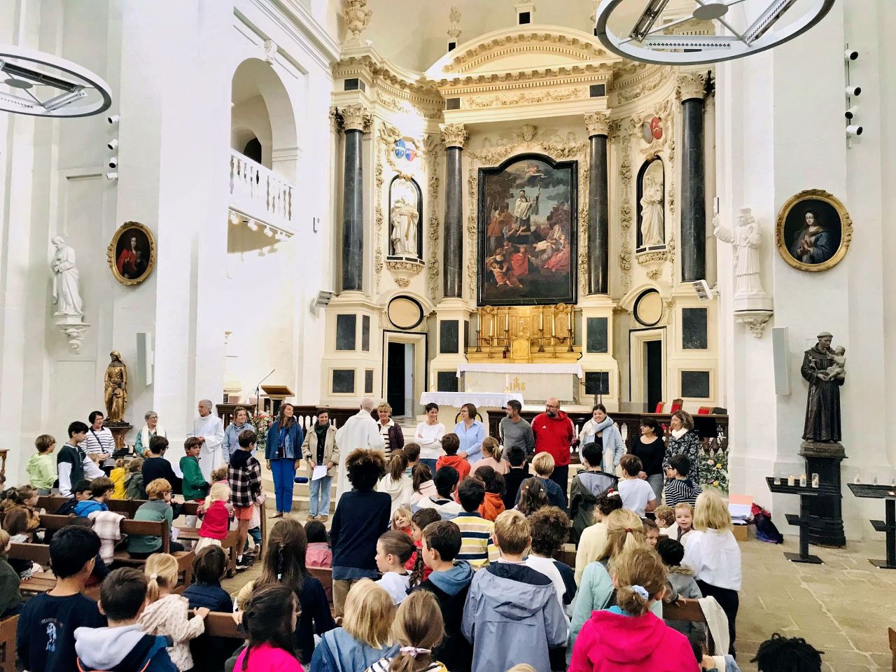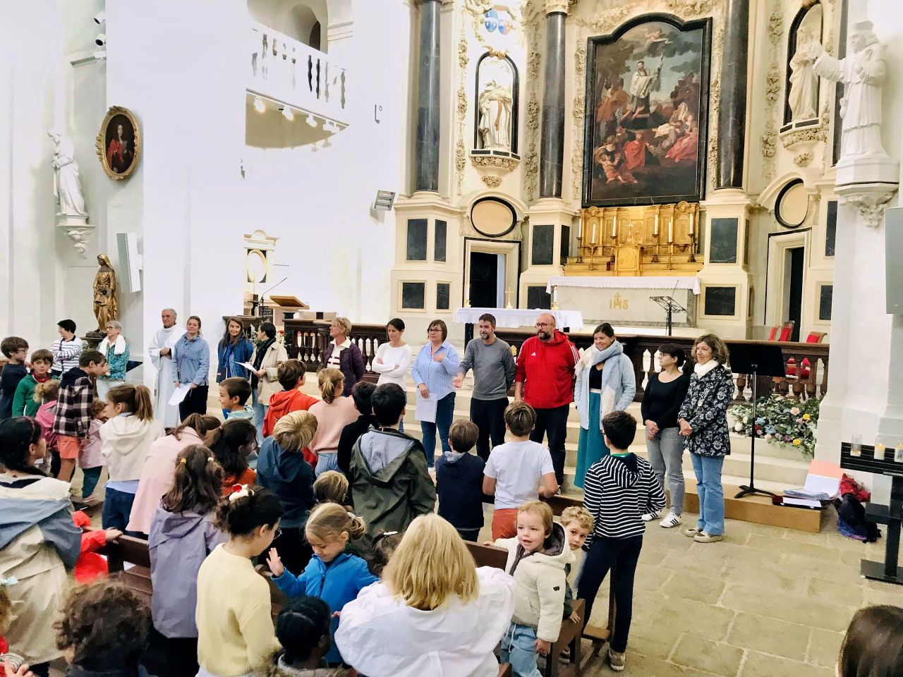 Petits et grands autour du Père Patrice Marivin pour confier notre année scolaire au Seigneur.