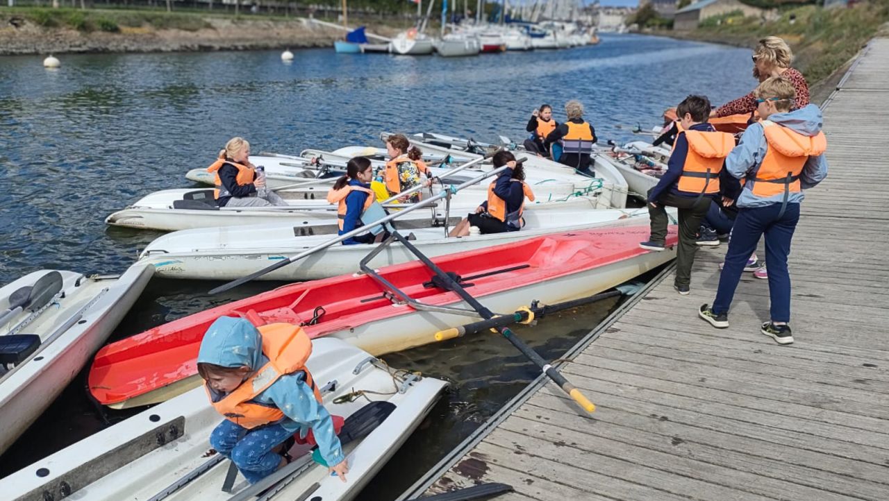 Les élèves de CM1- CM2 bénéficient de séances d'aviron dans le port de Vannes encadrés par des professionnels.