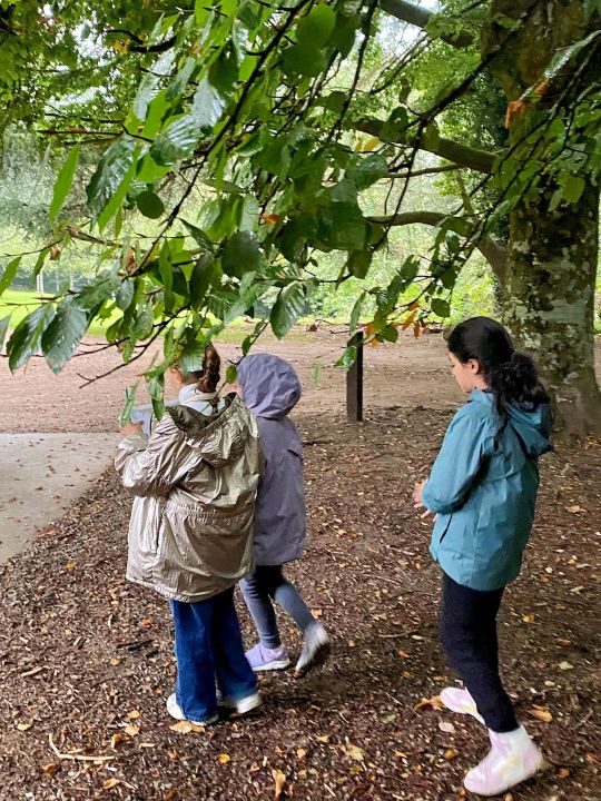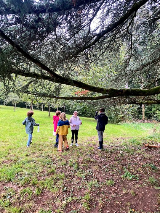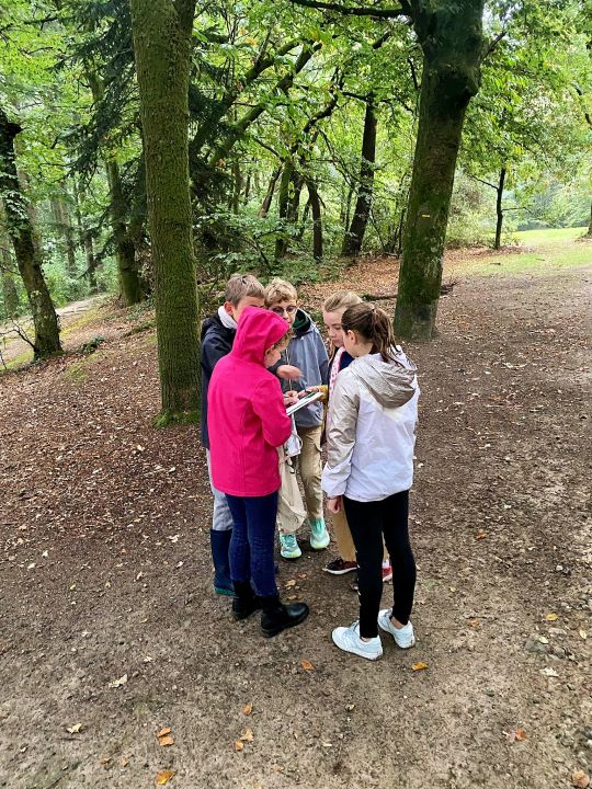 La première, en lien avec le programme des sciences consistait pour les élèves, par groupes de 5, en une recherche des différentes sortes d'arbres qui composent le bois de Kerozer. Pour cela, ils ont utilisé une clé de détermination, que l'on peut trouver sur le site de l'ONF (Office National des Forêts).