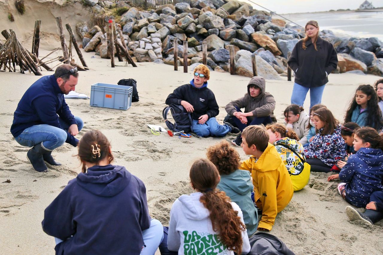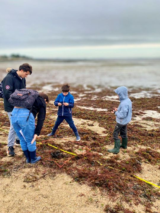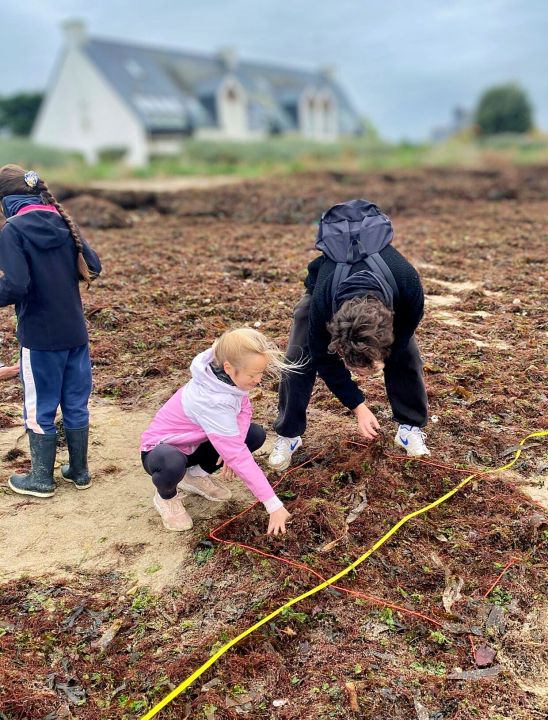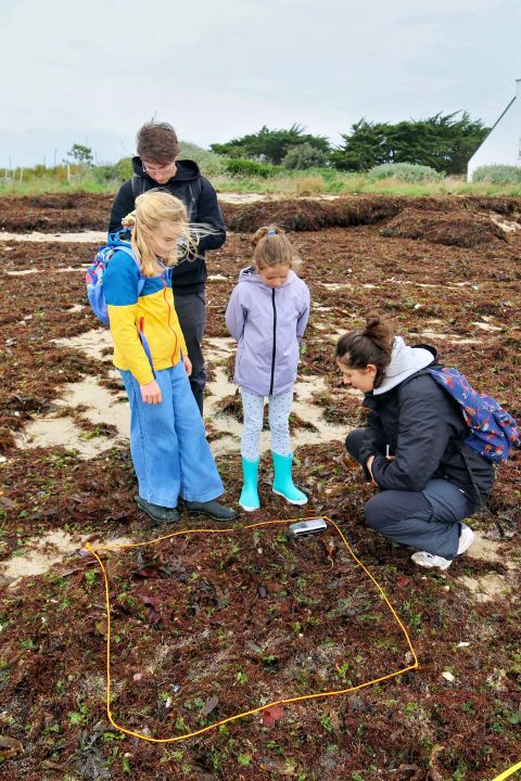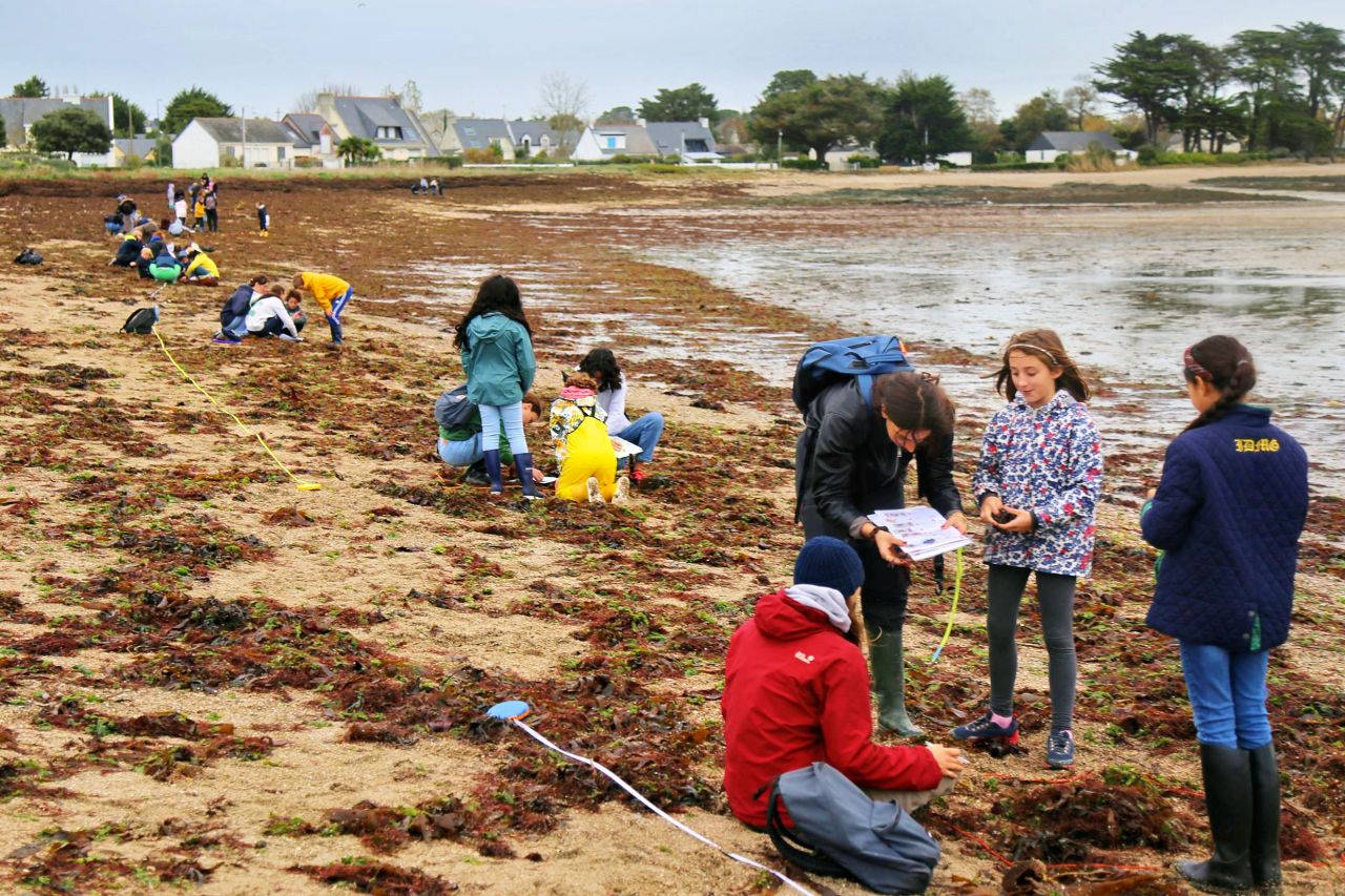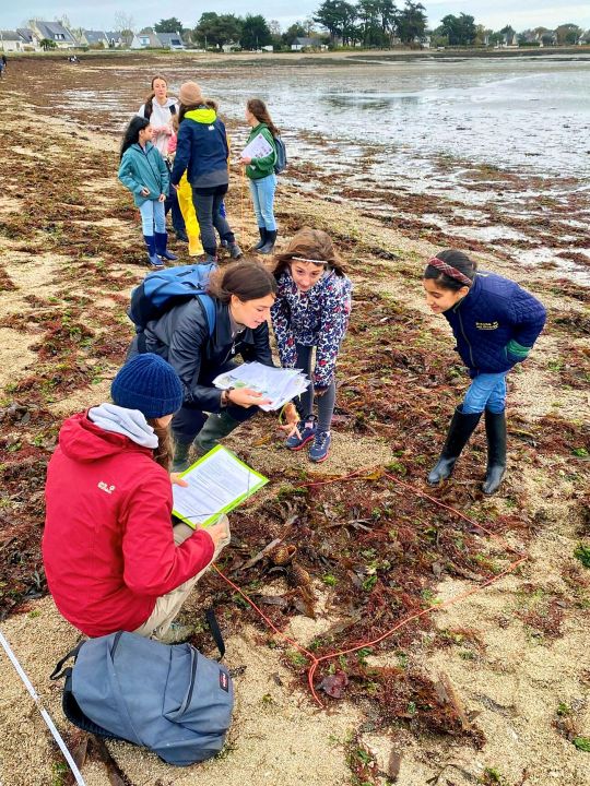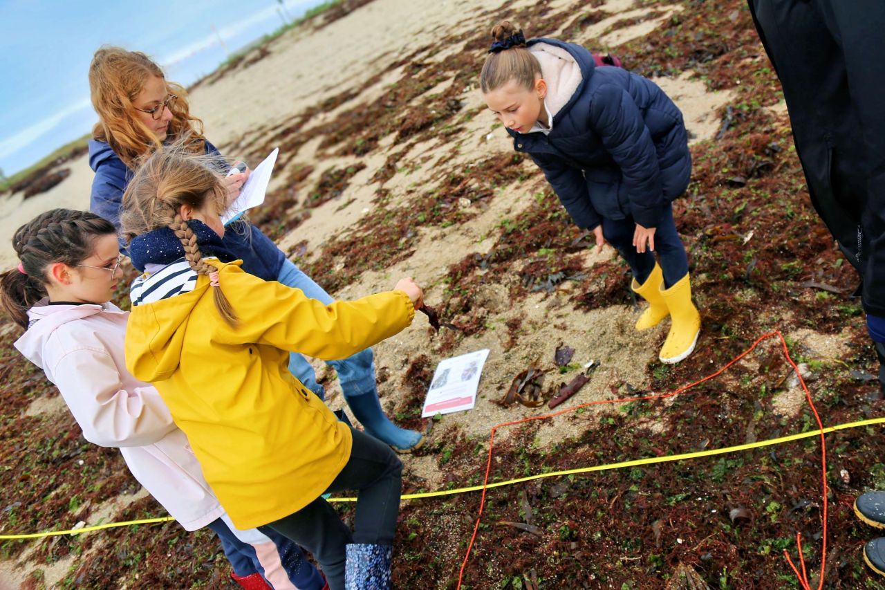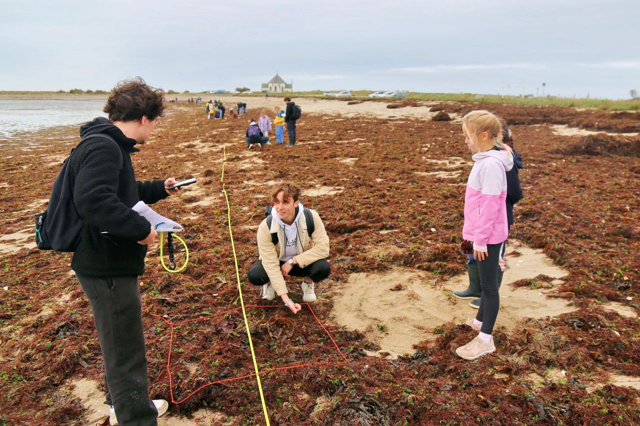 Sur la laisse de mer, ils déroulé le transect (en déroulant un double décamètre sur 25m), les élèves ont placé des carrés d'1m² pour observer la laisse de mer, à savoir les type d'algues au moyen d'une clé de détermination, leurs quantités, la largeur de la laisse de mer. Ces mesures ont été enregistrées grâce à un GPS, et seront renseignées sur la base de données du Museum National d'Histoire Naturelle. Ce protocole participatif permet aux scientifiques de suivre l'évolution de la laisse de mer.