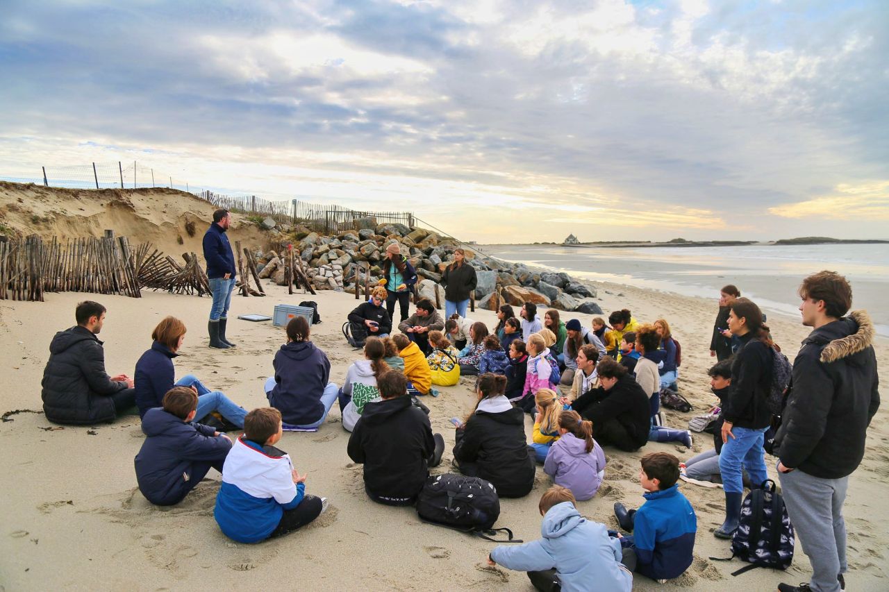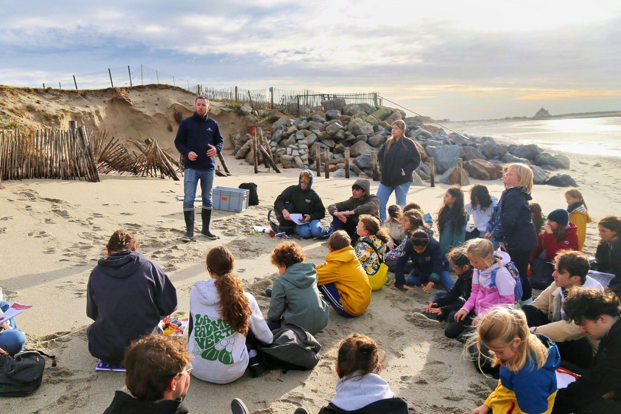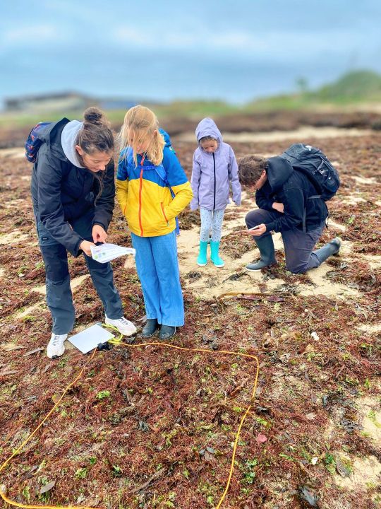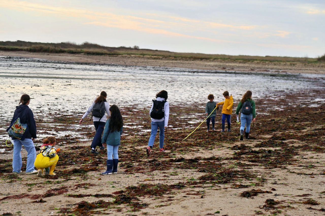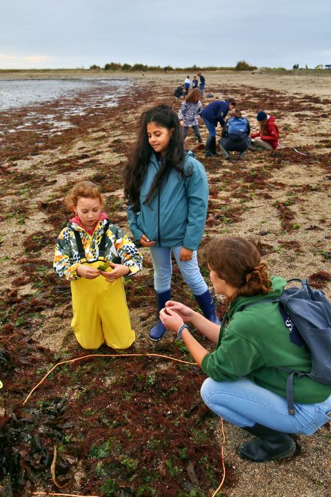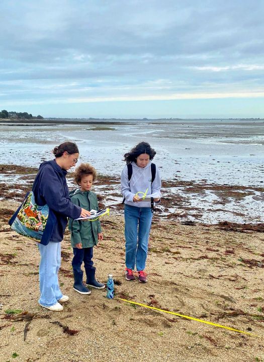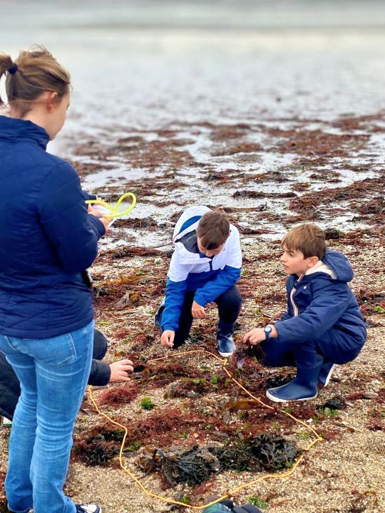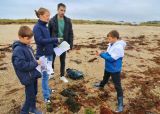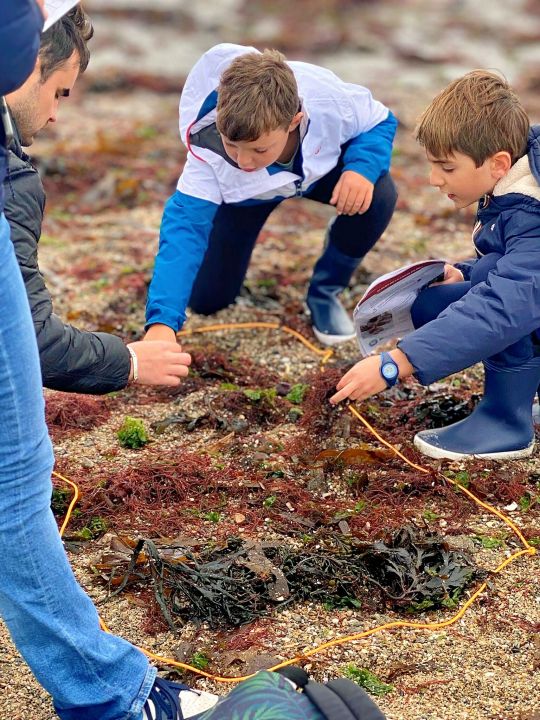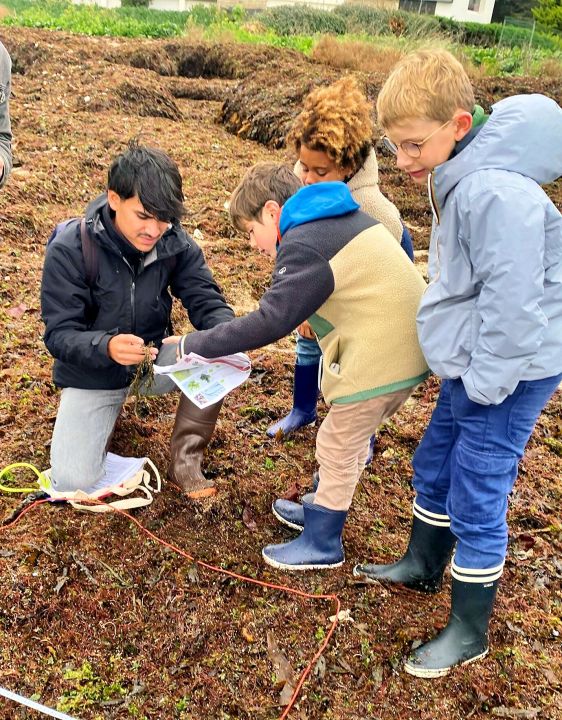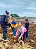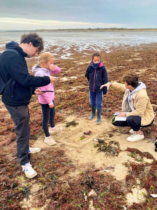 Sur la laisse de mer, ils déroulé le transect (en déroulant un double décamètre sur 25m), les élèves ont placé des carrés d'1m² pour observer la laisse de mer, à savoir les type d'algues au moyen d'une clé de détermination, leurs quantités, la largeur de la laisse de mer. Ces mesures ont été enregistrées grâce à un GPS, et seront renseignées sur la base de données du Museum National d'Histoire Naturelle. Ce protocole participatif permet aux scientifiques de suivre l'évolution de la laisse de mer.