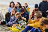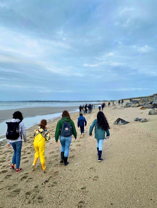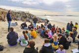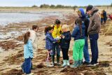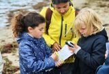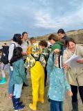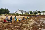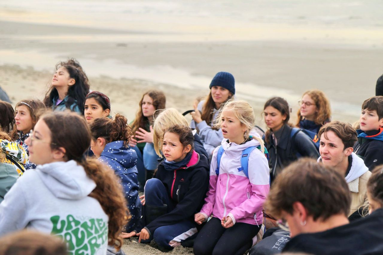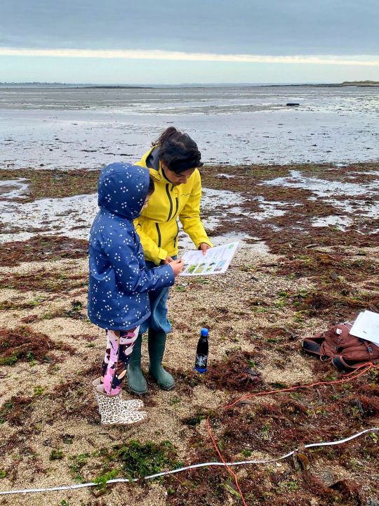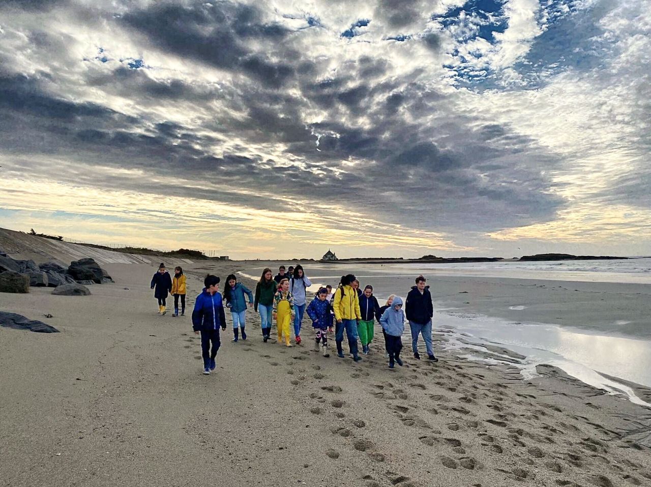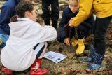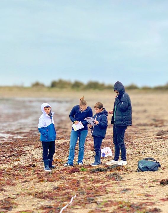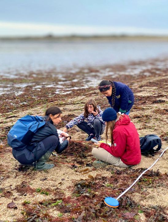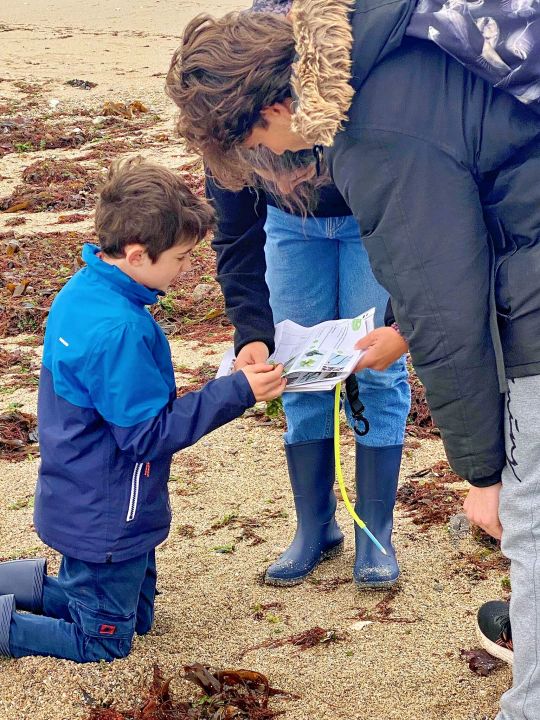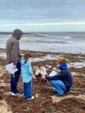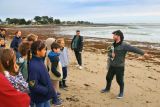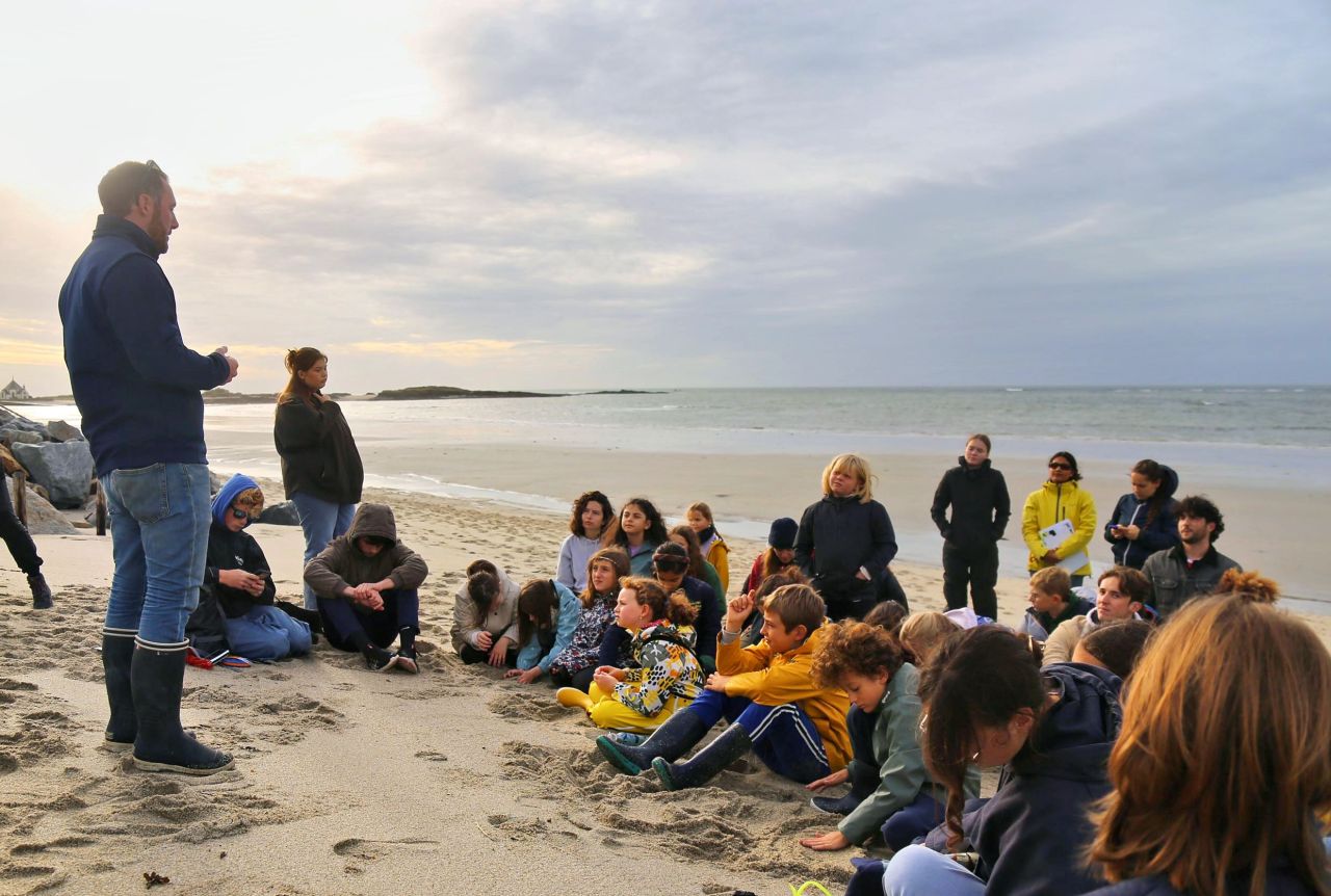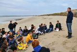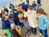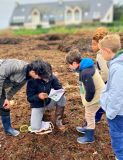 Sur la laisse de mer, ils déroulé le transect (en déroulant un double décamètre sur 25m), les élèves ont placé des carrés d'1m² pour observer la laisse de mer, à savoir les type d'algues au moyen d'une clé de détermination, leurs quantités, la largeur de la laisse de mer. Ces mesures ont été enregistrées grâce à un GPS, et seront renseignées sur la base de données du Museum National d'Histoire Naturelle. Ce protocole participatif permet aux scientifiques de suivre l'évolution de la laisse de mer.