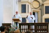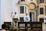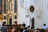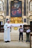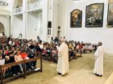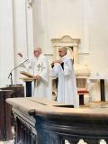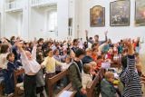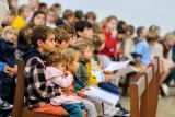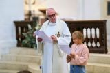 Petits et grands autour du Père Patrice Marivin pour confier notre année scolaire au Seigneur.